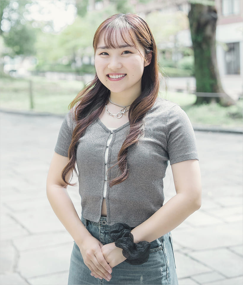 大学では、熊本ヴォルターズのチアリーダー(VG)としての活動を通して、努力すること、チームワークや裏で支えることの大切さなどを学びました。